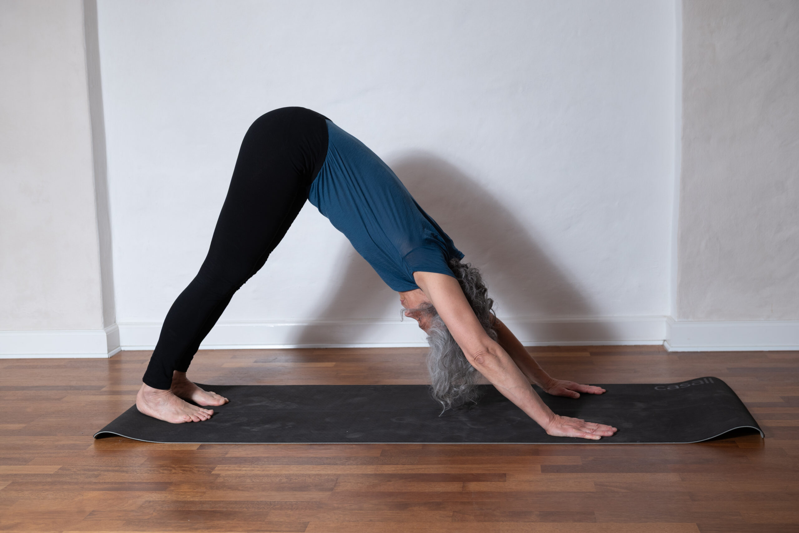 Start og slut med et halv minuts stående Shavasana for lige at mærke kroppen og sikre dig at du følger med mentalt i stillingerne. Kropsbevidsthed.